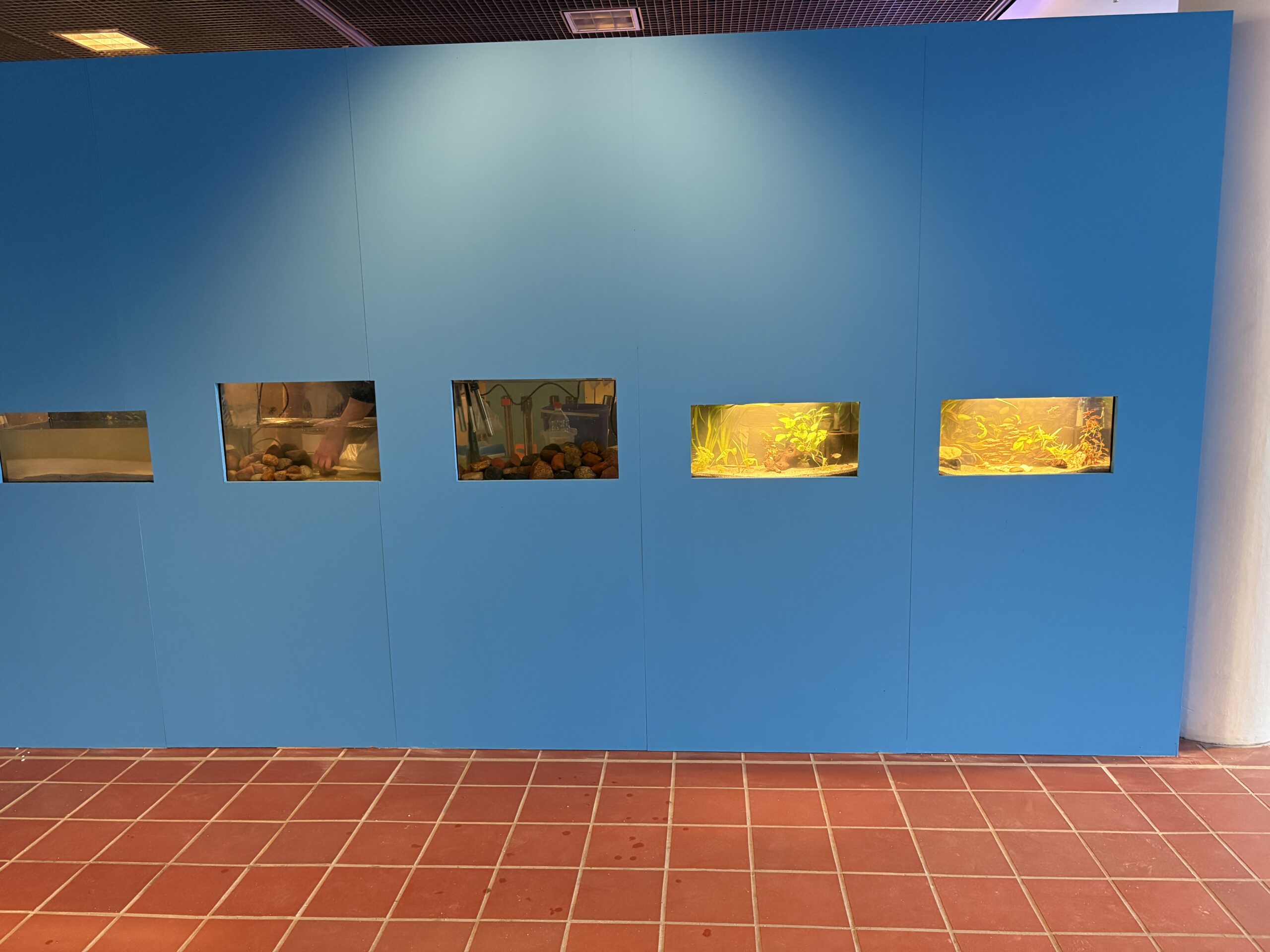 Besucherinnen und Besucher erwartet eine vielfältige Schau mit rund 20 Aquarien und knapp 20 Terrarien: Von Schnecken und Garnelen bis hin zu Spinnen ist vieles vertreten. Gezeigt werden bewusst robuste, einfach zu haltende Arten, die die Ausstellungsbedingungen gut vertragen.