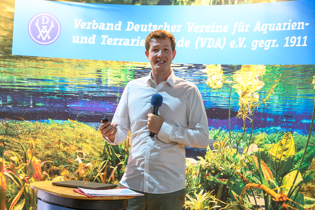 Lawrence Kemnitz stellte die Arbeit des Aquarienclubs Braunschweig vor, der sich gezielt um den Erhalt seltener lebendgebärender Fische bemüht. Besonders spannend war sein Einblick in die digitale Bestandsverwaltung über die Plattform Aqua-Unity. Sein Vortrag verband Technik, Leidenschaft und Nachhaltigkeit und zeigte, wie moderne Werkzeuge die Erhaltungsarbeit voranbringen können.